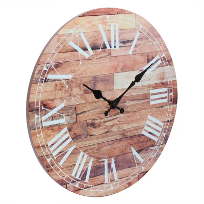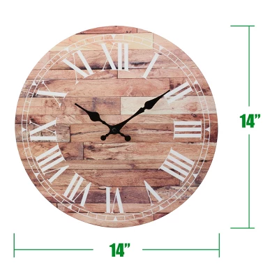 Add some vintage elegance with a little rustic flare to your home decor with a Stonebriar 14″ vintage Roman numeral wall clock. This unique clock features a sophisticated vintage inspired design with classic Roman numerals and a lightly worn wood clock face print for a rustic antique feel. It is the perfect addition for the kitchen, living room, bedroom, or any room in your home. Clock is lightweight and comes with attached keyhole hanger for easy installation right out of the box. Buy your Stonebriar 14″ wooden wall clock today and create an instant classic in your home decor.