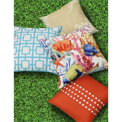 The Edie@Home Outdoor Pillow Collection combines fresh, stylish designs and high-quality fabrics made to withstand the elements of the outdoors. This elegant Edie@Home Embroidered Printed Coral Outdoor Pillow features subtle coral embroidery in cream and gold to complement your decor. Each plush decorative throw pillow measures 18×18. Can be used indoors or outdoors. Easy spot clean. Stitched closure. 100% Polyester.