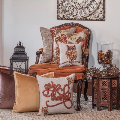 - Single-sided: Design includes an embroidered and beaded Give Thanks message with coordinating fall leaves in opposing corners