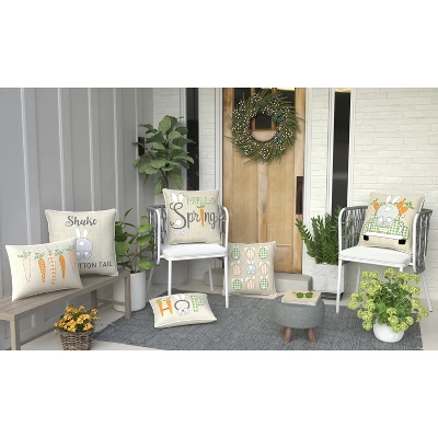 Hop right into spring with the Pillow Perfect Easter Indoor/Outdoor Reversible Throw Pillow in Cotton Tail Natural. Complete with a “COTTONTAIL” vanity plate on a green & white gingham truck, it’s the perfect way to transport this fluffy bunny and his carrots. The reverse side features an adorable bunny bottom with the expression “Shake your Cotton Tail.” This whimsical pillow is ideal for spring or Easter decorating, and will look adorable on an entry way bench or your favorite armchair. The plush recycled polyester fill insert will maintain the pillow’s shape for years to come. Spot clean or hand wash only as needed.