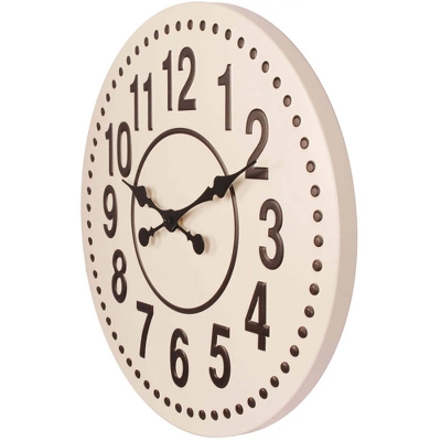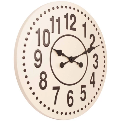 Step outside the box with the Gunmetal Ivory Wall Clock from Infinity Instruments. Measuring 19 5/8 inches in diameter, this decorative indoor wall clock features a rich cream colored finish on a sturdy metal frame. With raised dark brown numerals and brown metal hands, you can easily tell the time from anywhere in the room. Additionally, this eye-catching clock features sweep movement for accurate time keeping. This clock is perfect for the game room, living room, bedroom or other entertaining areas.