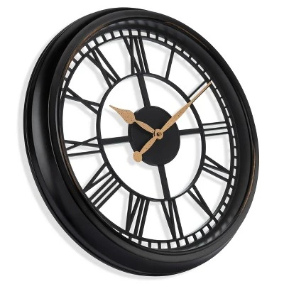 This classic timepiece is the perfect clock to make a statement, or that missing item finish your home décor. This Westclox 20” classic roman numeral wall clock showcases a beautifully simple dial that is large enough to read from anywhere in the room. The open dial design allows you to see through the numbers exposing the wall behind. Classic black finish with hand painted gold edges. Complete with glass lens. Quality quartz movement ensures perfect time accuracy. Requires one AA battery to operate. Proudly made by Westclox, Limited 1 year warranty.