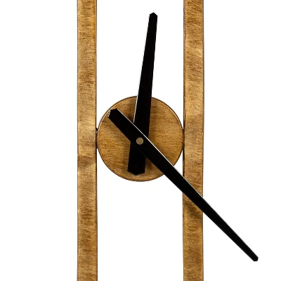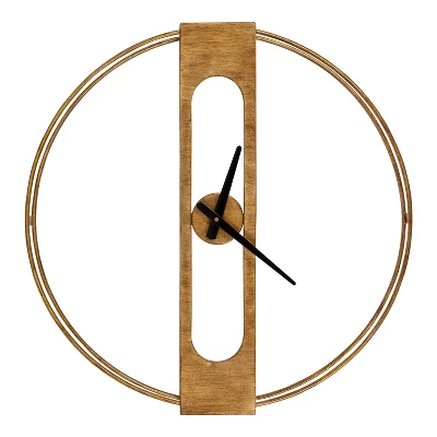 A uniquely minimalist design, the Urgo clock displays a quiet elegance. The luxurious brushed gold finish ensures it stands out in style while the black metal hands keep time around the numberless display, creating an understated, modern glam look. The wall display dimensions are 22 inches in diameter by 2 inches deep. A metal keyhole hanger is attached to the back for easy and secure wall display.