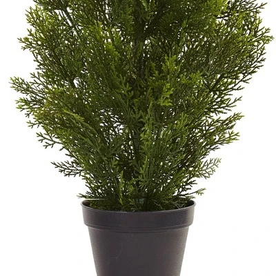 The perfect addition to your patio or hallways. This 3ft. Mini Cedar Pine Tree (Indoor/Outdoor) – Green from Nearly Natural is sure to add a sense of refreshing calm and natural beauty to your home decor. Use it to fill the empty floor spaces within your home or by your patio door to make a definite impression. Made from a combination of durable materials, making this decorative accent ideal for outdoor use.