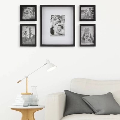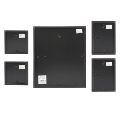 Display favorite memories with Stonebriar’s 5 pc wooden nesting frame set. This decorative frame set is made of MDF wood and features a smooth black painted finish for a Modern feel. Set includes 1- 12.5″x10.5″” frame matted to 5″x7″ photo, 2- 6.7″x4.7″ frames that hold 4″x6″ photos, and 2- 4.7″x4.7″ frames that hold 4″x4″ photos. Photos are easily loaded with the swivel clips on back. The protective glass insert will keep photos, documents, and artwork safe from dust and damage. Frames can be displayed on any table top or wall hanging with the attached hanging loops. Stonebriar frame set works great by itself or mix and match with other decorative frames from the Stonebriar collection to create a beautiful gallery set.