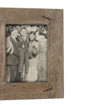 Display two favorite memories in style with the 5×7 multi-photo frame from Foreside Home and Garden. A beautiful natural wood border with metal staple details in each corner to add a unique rustic texture to the picture frame.