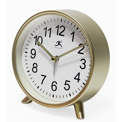 room in your home. This tabletop alarm clock features a matte gold finish on a durable molded plastic