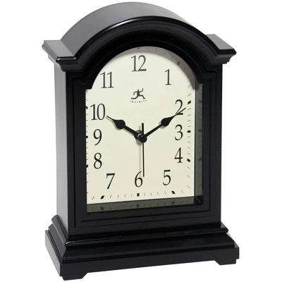 A new addition to the Infinity Instruments tabletop line is our attractive Grandfather-inspired tabletop clock. This simple tabletop clock is a welcome style addition to your mantle, living room table, or bedroom. This clock features a rich black finish, hard plastic lens, and Old World-inspired clock face. Measuring just 9” x 5.5”, this Grandfather-inspired tabletop clock is the perfect complement to any smaller design pieces you have in your living room or bedroom.