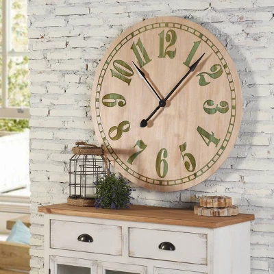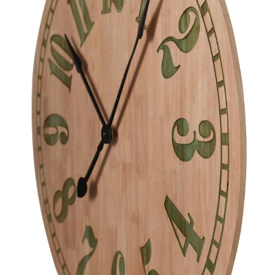Add a quaint piece of décor to the interior of your home with the Alder Natural Finish Wall Clock. Designed with a natural wood finish and blue green gel inlay for the numbers and dials, this piece is simple yet stylish. This wood finished wall clock would make a perfect addition to any wall in your home. This piece exemplifies superior product design and great styling. It will pair well with any styling. If you put it in the bedroom or family room, this decor stands out. Suitable for residential use in a dry location. Due to the way this piece is made, no two are exactly alike and color finishes may vary from piece to piece. Due to lighting and monitor differences, actual colors and finishes may vary slightly from what appears online