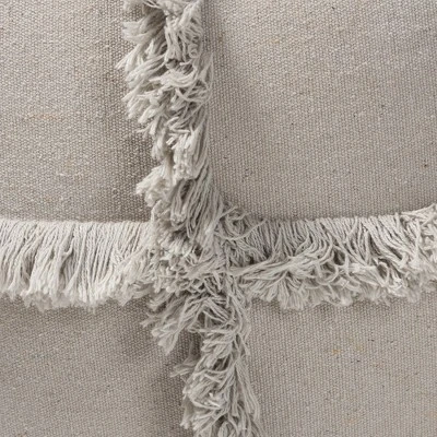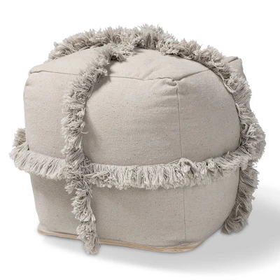 Add a cozy, bohemian touch to any space with the Alfro pouf. Handwoven from cotton, the Alfro features an understated gray hue. A criss-cross overlay of fringe lends a touch of texture. This versatile piece can be used as a seat, footstool, or casual coffee table. Made in India.