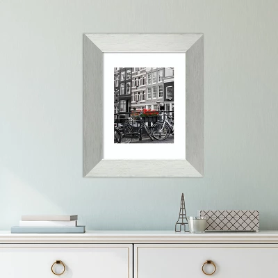 Give your home or office the finishing touch with this 100% real wood picture frame featuring the Brushed Sterling Silver frame which is a contemporary subtly brushed silver finish with flat profile and lines and a minimalist shape The frame is 2.25 in. wide and stands 1 in. off the wall.A beautiful frame showcases special photos, awards, and mementos and can turn any piece of art into beautiful home decor. Individually made by hand in the USA using traditional custom framing techniques, it has the quality you would expect from your local frame shop and holds its value with premium finishing that can be appreciated up close. Because of our attention to detail and focus on artistry, architects, interior designers, and homeowners alike choose this picture frame to create beautiful living spaces