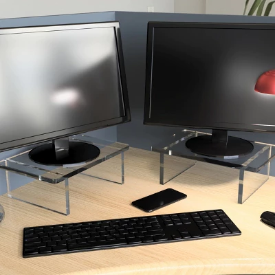 Azar Display’s Deluxe series of Clear Acrylic Risers are elegant and functional as well as versatile. Merchandise and Showcase your products or valuables at varying heights in your store or boutique to create visual appeal. These risers add a touch of fancy and uplift any item that is placed on them. Also perfect for catering weddings, corporate events, parties and special occasions. Or use in your office or home office to elevate your computer and create an ergonomic as well as luxurious work space while maximizing your desk space. There are bumpers on the bottom of each corner leg to prevent sliding or scratching on surfaces. Available in 11 different heights to meet your specific needs. Use these in any retail environment or home or office setting. Sold in Multiples of: 1 Material: Acrylic Overall Measurement: 22W x 10D x 3H Color: Clear Material Thickness: .5 Thick Weight Capacity: 85 pounds