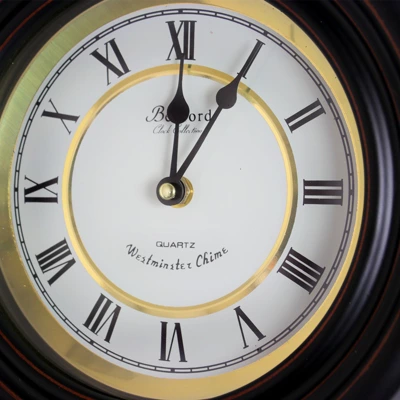 This contemporary wall clock from the Bedford Clock Collection adds a classic yet modernized appearance to any room. This makes a splendid addition to any home or office with a versatile and unique design. Has 4 chime modes and a volume control toggle. Polished brass inspired pendulum bob feature adds a classic style to this contemporary piece.