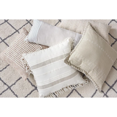 For a cool and modern update, our Roe geo decorative pillow is the perfect addition to any decor. This collection features an all over jacquard woven geo pattern with intricate detailing, creating beautiful texture and dimension. 100% soft yarn-dyed heavyweight cotton provides a casual touch and natural appeal, while the lofty polyester filling offers easy comfort and care. Spot cleaning recommended. Available in Dune, Navy and Seaglass.