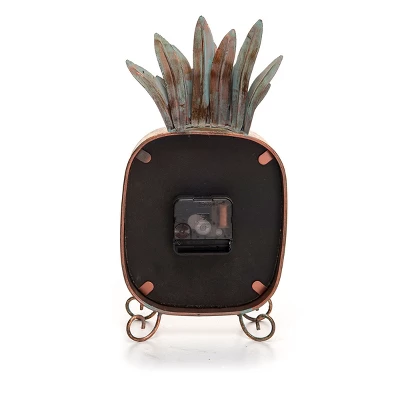 - Style: This metal clock features a distressed copper patina finish in the shape of a pineapple. With it’s rustic charm, this clock will fit wonderfully with your favorite décor on your desk or table.