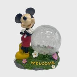 Disney 10″ Fiberglass/Polyester Mickey Mouse Solar Garden Statue With Crackle Glass Ball
