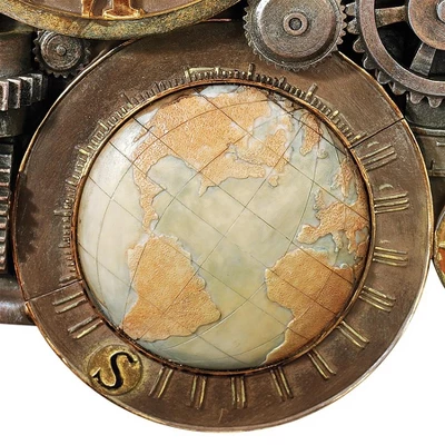 - HIGH-QUALITY ANALOG CLOCK – Hand-cast using real crushed stone bonded with durable designer resin, our unique 3D sculpted mechanical design includes moving metal hands, bold roman numeral numbers, and a rustic faux globe compass and gears