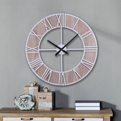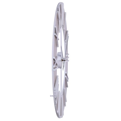 The Natural & White Farmhouse Wall Clock by StyleCraft is constructed with a window pane design, making it a unique addition to interior spaces. Finished in a matte white finish and whitewash, this elegant wall clock can be used in the living room, bedroom, or entryway. This piece exemplifies superior product design and great styling. It will pair well with transitional styling. If you put it in the bedroom or family room, this decor stands out. Suitable for residential use in a dry location. Due to the way this piece is made, no two are exactly alike and color finishes may vary from piece to piece. Due to lighting and monitor differences, actual colors and finishes may vary slightly from what appears online