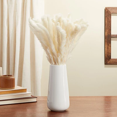 - You will receive 40 white dried pampas grass stems with a white ceramic vase
