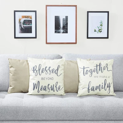 - Farmhouse Pillow Covers: Easily refresh your home decor with this set of decorative throw pillow covers; features “Blessed Beyond Measure” and “Together We Make a Family” printing that will be the perfect addition to any bedroom, couch, sofa, chair, patio, or car