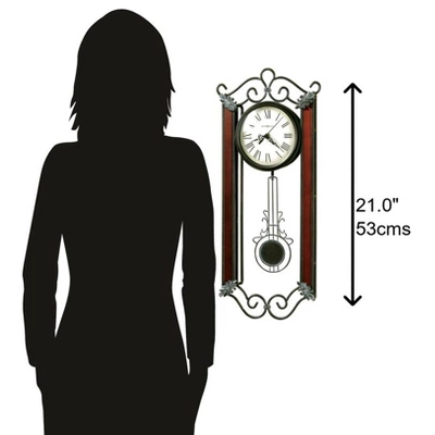 - WALL CLOCK: This Carmen Wall Clock is made of wrought iron with cast decorative corner ornaments and Windsor Cherry wood columns to compliment your home decor. The clock’s quartz movement makes a soft ticking noise without the use of chimes for a quieter environment.