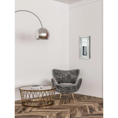 - Contemporary Style: The Chaz wall clock is finished in satin silver on select hardwoods and veneers and features inset mirror panels accenting the fixed front frame. The unique, sleek style of this contemporary wall clock makes it a modern and minimalistic-focused design piece. With the carefully detailed lines of this clock, it will become a treasured piece of any home’s decorative collection.
