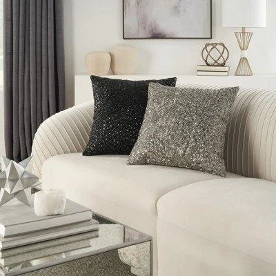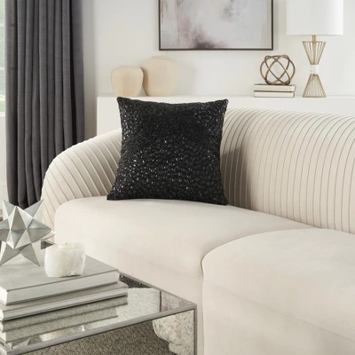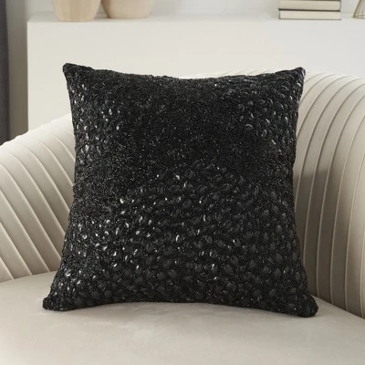 This glam throw pillow from Mina Victory Home Accents is dazzling, creative, and positively bold, and it easily dresses up the look of any room. The contemporary design displays a swirling bead and crystal pattern that reflects changing light beautifully. Handmade polyester front cover and cotton back cover; polyester insert included. Pattern appears on face only.