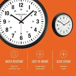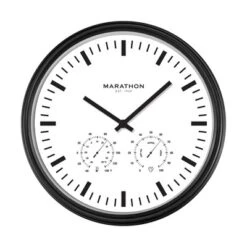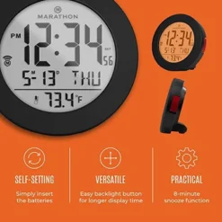 Marathon UltraWide Atomic 14-Inch Panoramic Display Wall Clock With Indoor Temperature & Humidity