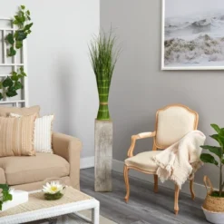 Nearly Natural 4.5-ft Cymbidium Orchid Artificial Plant In White Tower Planter