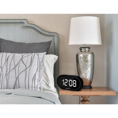Riptunes Digital Alarm Clock, the perfect addition to your bedroom! With its sleek design and user-friendly features, this alarm clock is sure to make your mornings brighter. Choose from 5 different alarm sounds, including soothing nature sounds, wake up to your favorite sound. The full range alarm volume allows you to adjust the volume from low to high, making it perfect for light or heavy sleepers. The full range screen dimmer allows for adjusting the brightness of the display from bright to pitch dark, ensuring a comfortable viewing experience at any time of day. Featuring bright white digits, this alarm clock is easy to read even from a distance. And with its large snooze button, you can easily catch a few extra minutes of sleep before starting your day. Whether you prefer a 12 or 24-hour clock, the Riptunes Digital Alarm Clock has you covered. And with the option to power via AC or DC 5V, you’ll never have to worry about running out of battery.