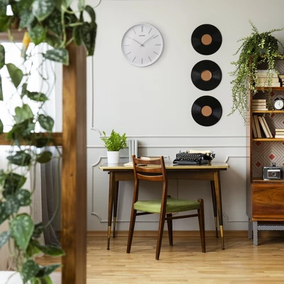 Pax is a 1 wooden wall clock in white oak veneer. You’ll love the silver-tone 3D numerals and open airy feel to this clock as no cover is necessary on this ultra chic piece. This clock features clean-lined essentials that are as good looking as they are -functional. This stylish clock’s urban design is a hip touch on any wall.