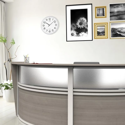 Seiko 16″ Office Classic Numbered Step Movement Wall Clock is simple, ultra-modern wall clock that brings simplistic style to any space. It features a round silver plastic frame with easy-to-read black details. You’ll love the step movement second hand. Powered by 1 AA battery (included). Overall dimensions: 15.7 X 15.7 X 1.5 inches. All Seiko clocks are equipped with quartz movement making it the most accurate at time keeping.