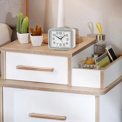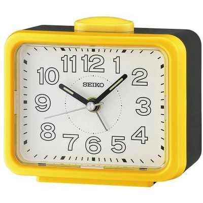 The Akarui Bedside bell alarm by Seiko features a brightly colored case sure to wake you up. The quiet sweep second hand moves continuously, eliminating annoying ticking sounds and allowing worry-free use in all quiet spaces. LumiBrite tipped hands for easy read in the dark. When fully charged, LumiBrite glows in the dark hours longer than conventional luminous. Powered by 1 C battery (included). Overall dimensions: 3.39 X 4.29 X 2.52 inches. All of this along with the most accurate quartz crystal movement Seiko has to offer an analog clock.