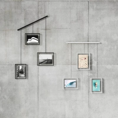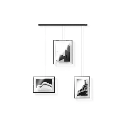 - MULTI-PHOTO WALL DISPLAY: Display your favorite photos in an eye-catching fashion using these three hanging, gallery-style frames suspended from a modern and sleek beam; features two 4×6 and one 5×7 picture frame