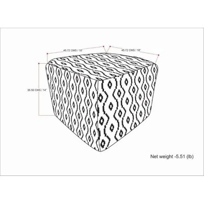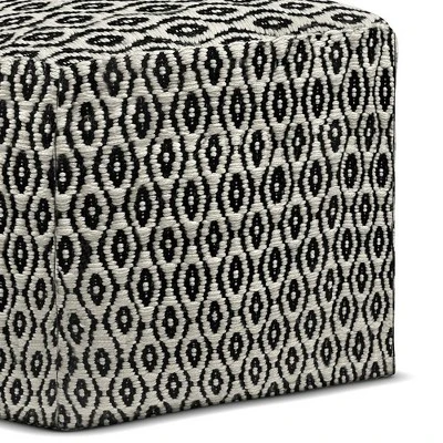 Add panache and color to your outdoor or indoor living space with Wallis Square Woven Outdoor/ Indoor Pouf. This pouf is perfect for use as a footstool or as extra seating. Featuring a white and black pattern this square-shaped pouf boasts durable and easy-care woven polyester that is water and UV resistant. This versatile pouf is sure to enhance the style of your decor.