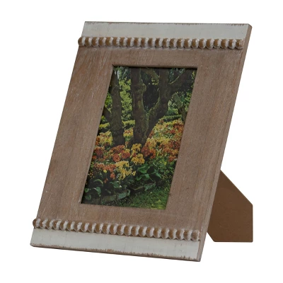 - The white border paired with the classic wood bead accent on the top and bottom give this piece a timeless look.