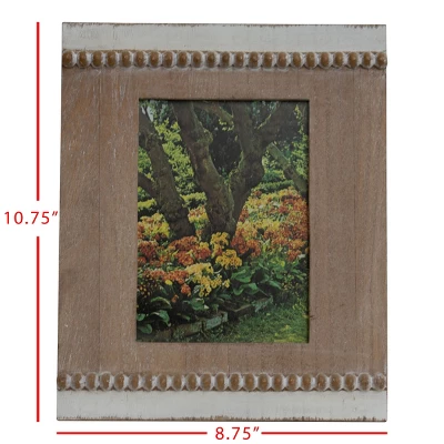 Timeless and traditional, a 5×7 wood photo frame from Foreside Home & Garden that will complement your favorite photo memories and allow them to fit seamlessly into any space of your home. A natural wood frame paired with off-white accents on two edges, and finished with a classic white washed wood bead detailing. The glass front will help to protect your photo from dust and other damage. The perfect accent for your shelf, desk, side table, mantel, or hung on a wall for a versatile display anywhere in your home.